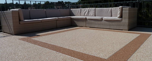 Diese äußerst moderne Bodenbelagsart eröffnet Ihnen eine völlig neue Gestaltungsvielfalt. Steinteppiche bestehen aus einer Vielzahl natürlich gerundeter Marmorsteinchen und verleihen Boden und Wänden eine sehr exklusive Optik und eine besonders lebendige Struktur. Die Gestaltungsmöglichkeiten und Farbkombinationen sind hier nahezu grenzenlos. Aufgrund einer strapazierfähigen, besonderen Materialbeschaffenheit, können Steinteppiche sowohl im Innen- als auch im Außenbereich eingesetzt werden. Da der Bodenbelag nicht verlegt sondern aufgespachtelt wird, lassen sich auch unebene Flächen leicht und unauffällig ausgleichen.
